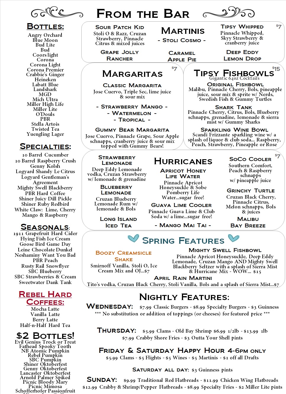 Drink Menu & Nightly Features